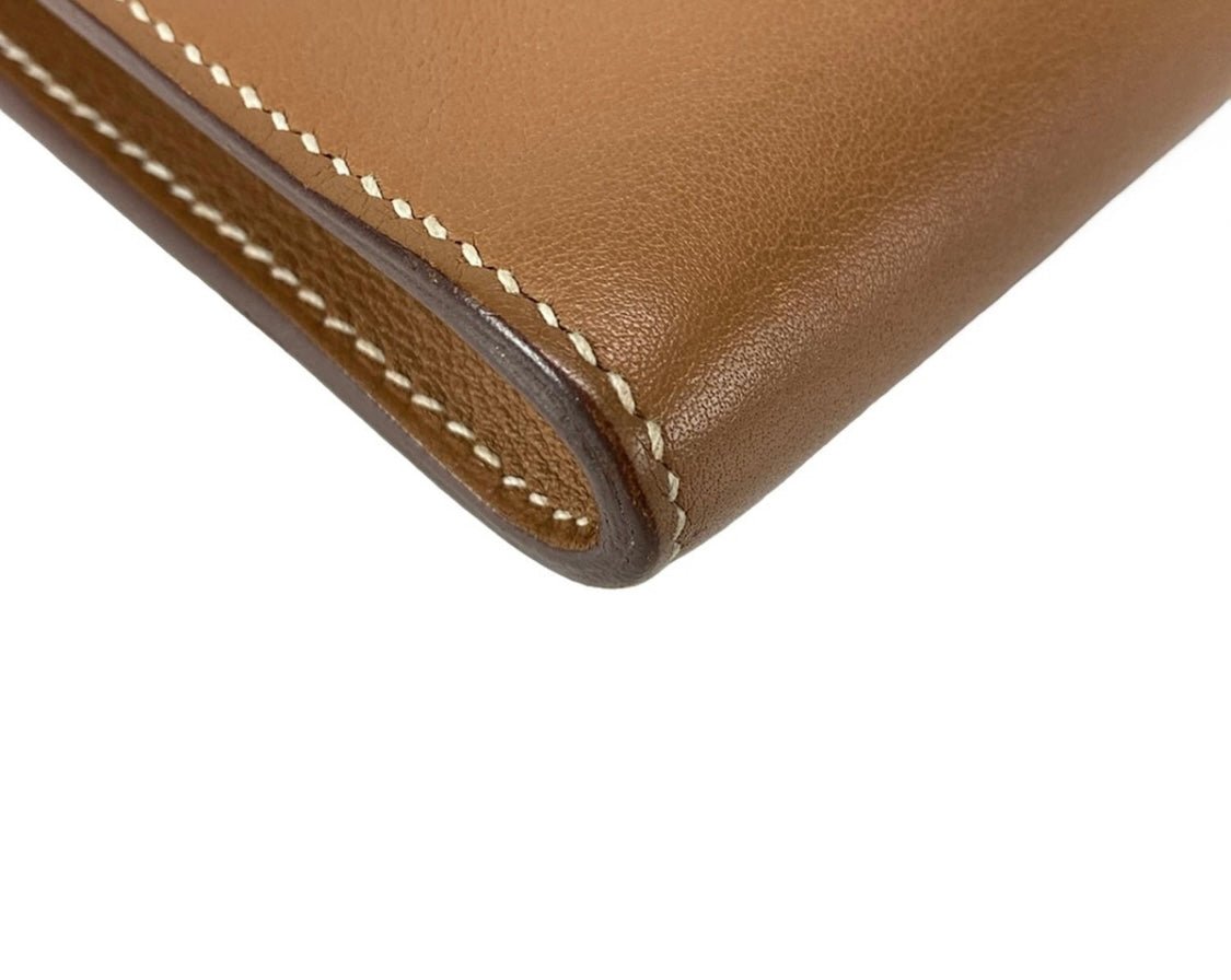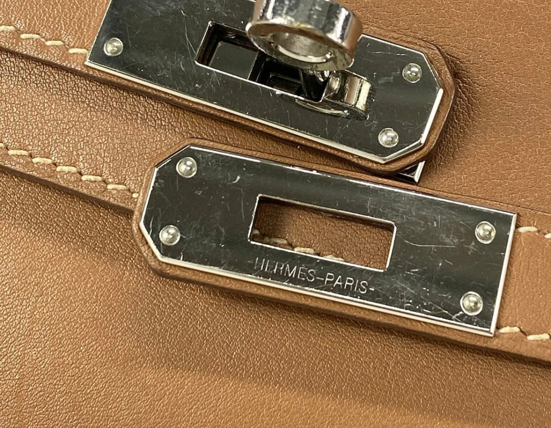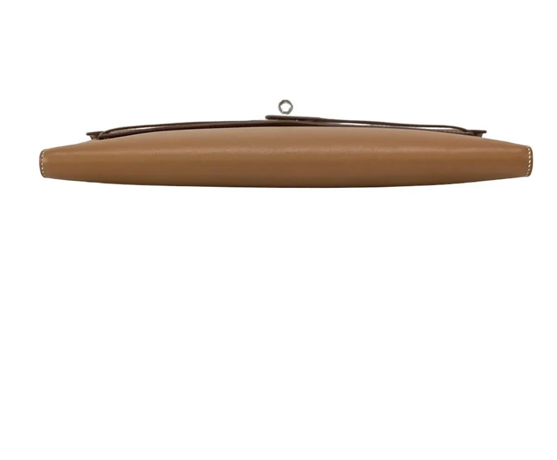 This Hermès Kelly Cut Clutch in Gold Veau Swift leather combines timeless elegance with refined craftsmanship. Featuring sleek palladium hardware, its supple veau Swift leather offers a smooth, luxurious texture. Measuring 31 cm by 13 cm, this pre-owned piece is perfect for sophisticated occasions, providing ample space while maintaining a slim, graceful silhouette. A true statement of understated luxury for discerning collectors.