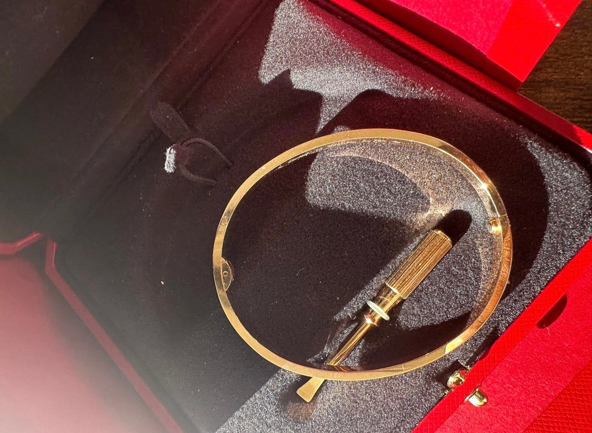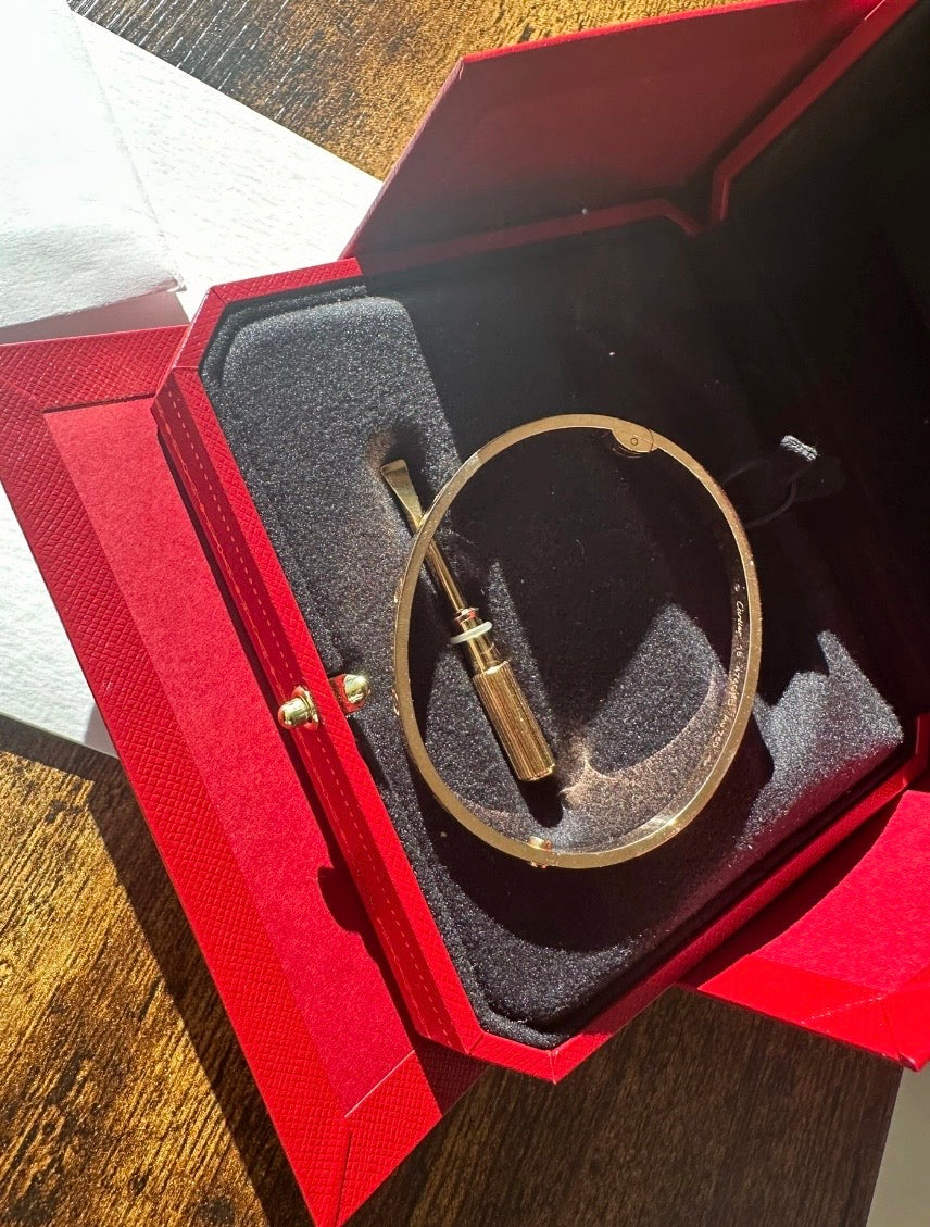 Discover the luxurious and exclusive Cartier Love bracelet in the medium model size 18. Crafted with 18K rose gold (750/1000), this timeless piece boasts a width of 4.8mm. It is in excellent condition and comes with a certificate, box, original case, and invoice. A timeless investment, purchased in 2025.