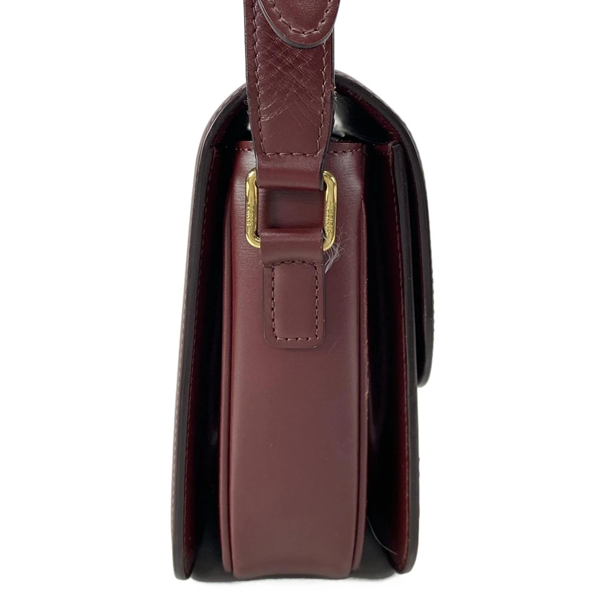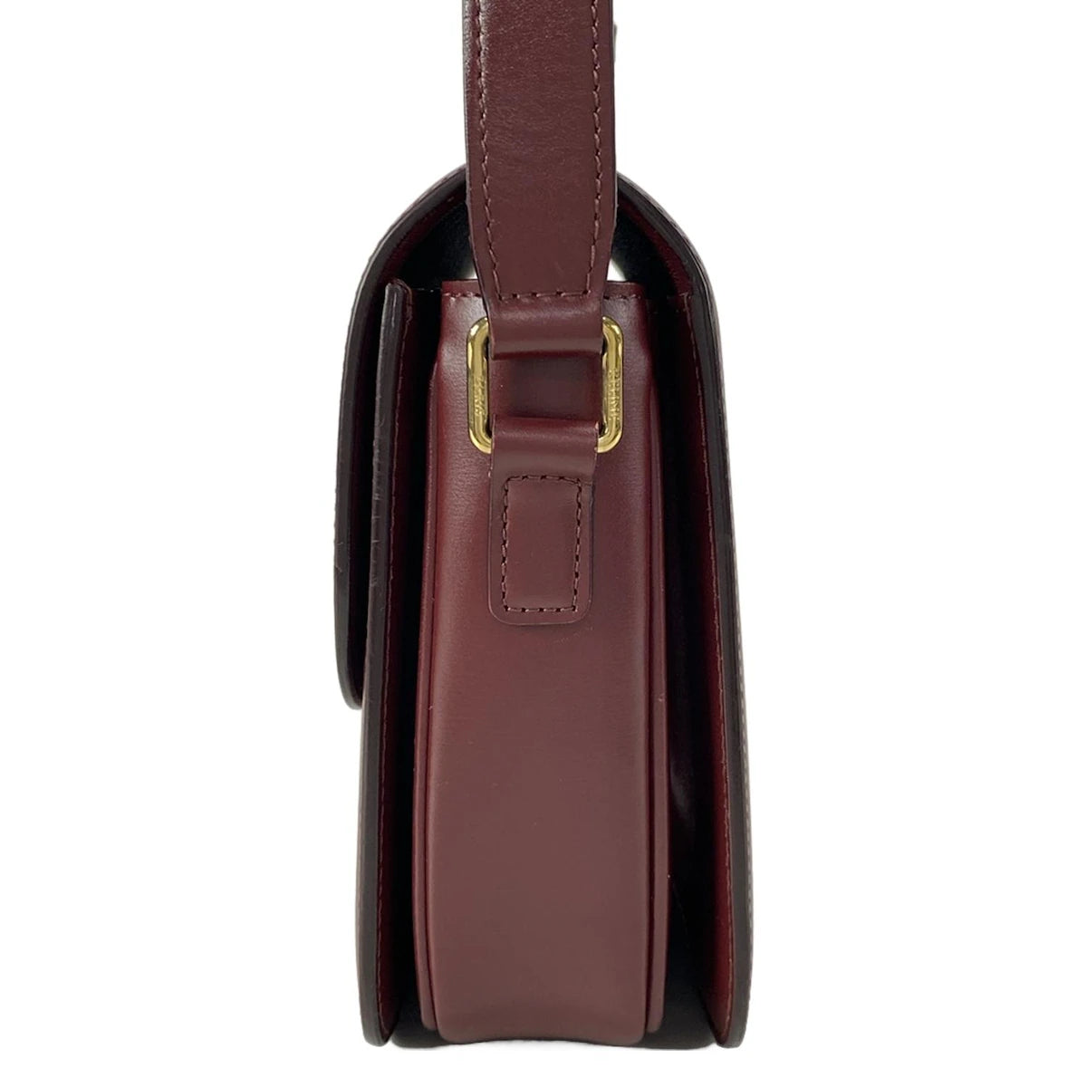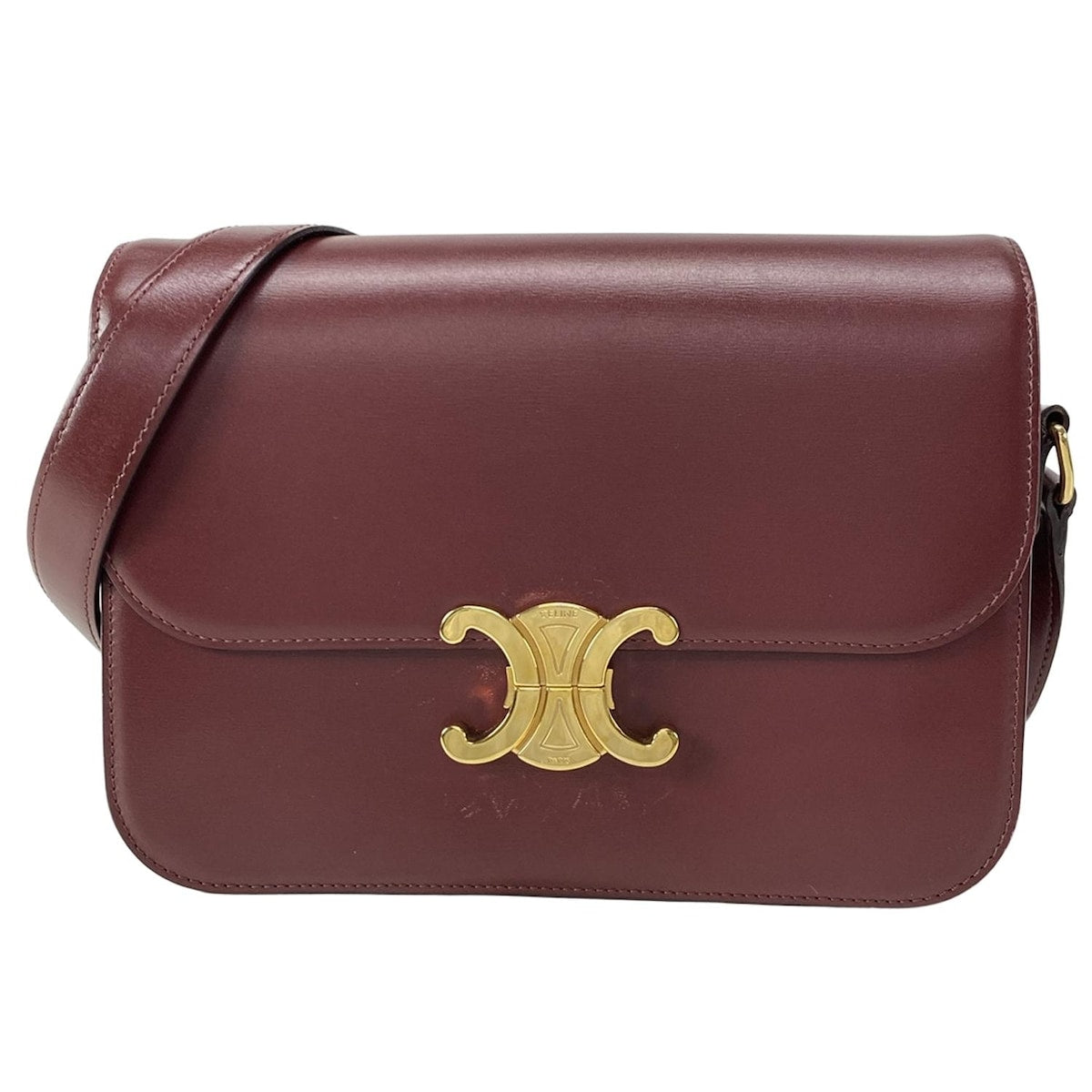 Elevate your style with the exquisite Celine Triomphe. Crafted with bordeaux leather, this medium-sized bag boasts an overall very good condition  Featuring a height of 16 cm, width of 22 cm, and depth of 6 cm, it offers enough space for your essentials. Complete with a dust bag, this luxurious piece is a must-have.