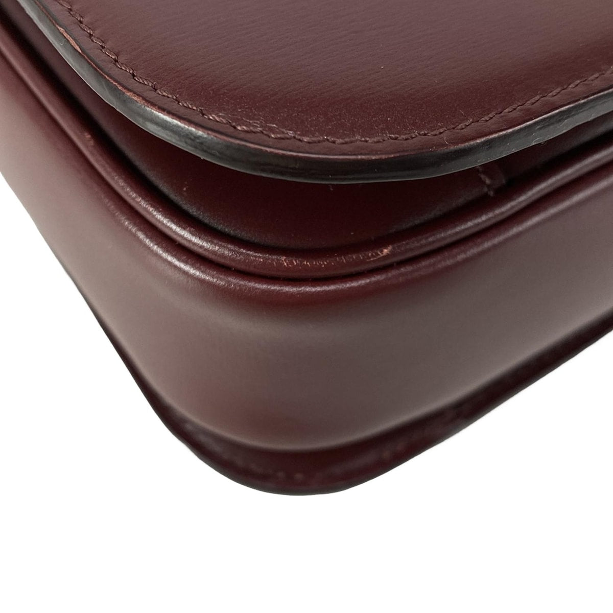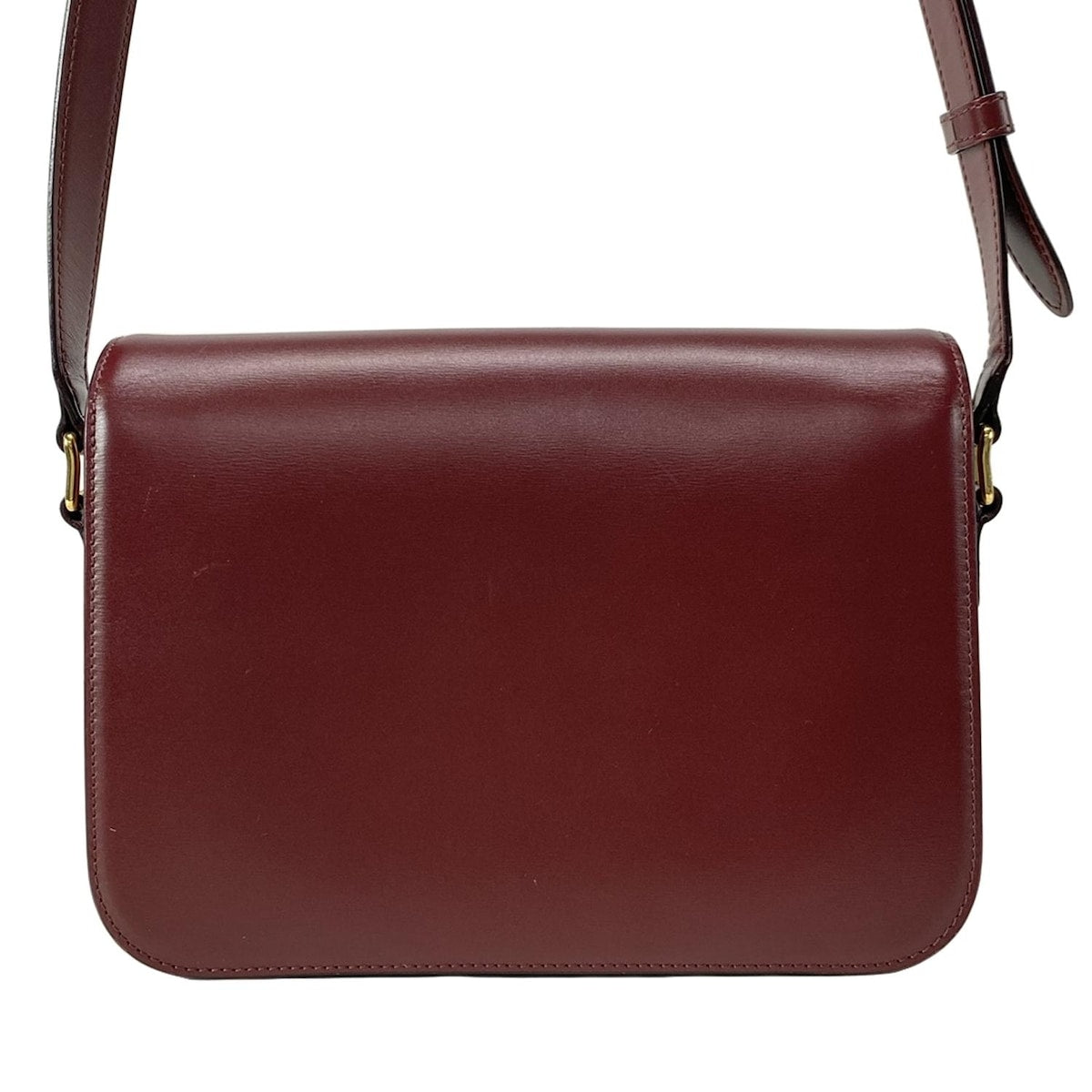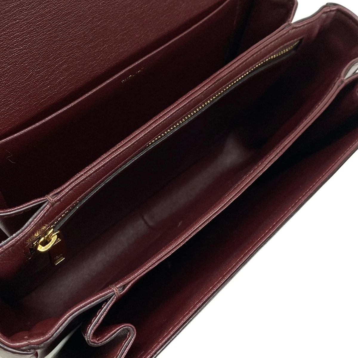 Elevate your style with the exquisite Celine Triomphe. Crafted with bordeaux leather, this medium-sized bag boasts an overall very good condition  Featuring a height of 16 cm, width of 22 cm, and depth of 6 cm, it offers enough space for your essentials. Complete with a dust bag, this luxurious piece is a must-have.