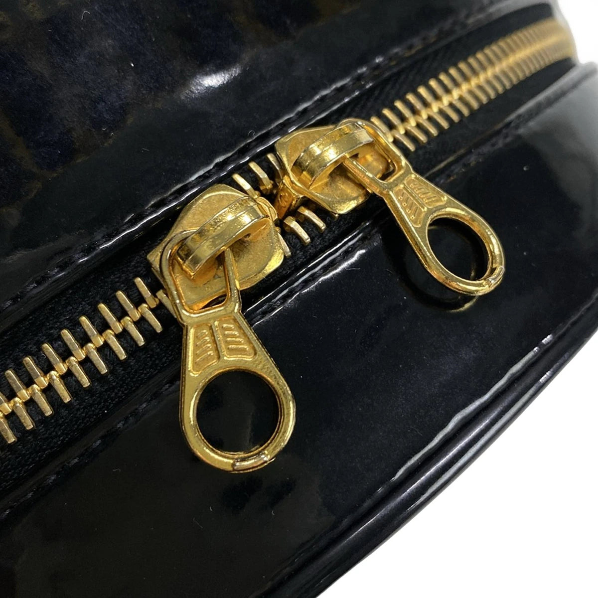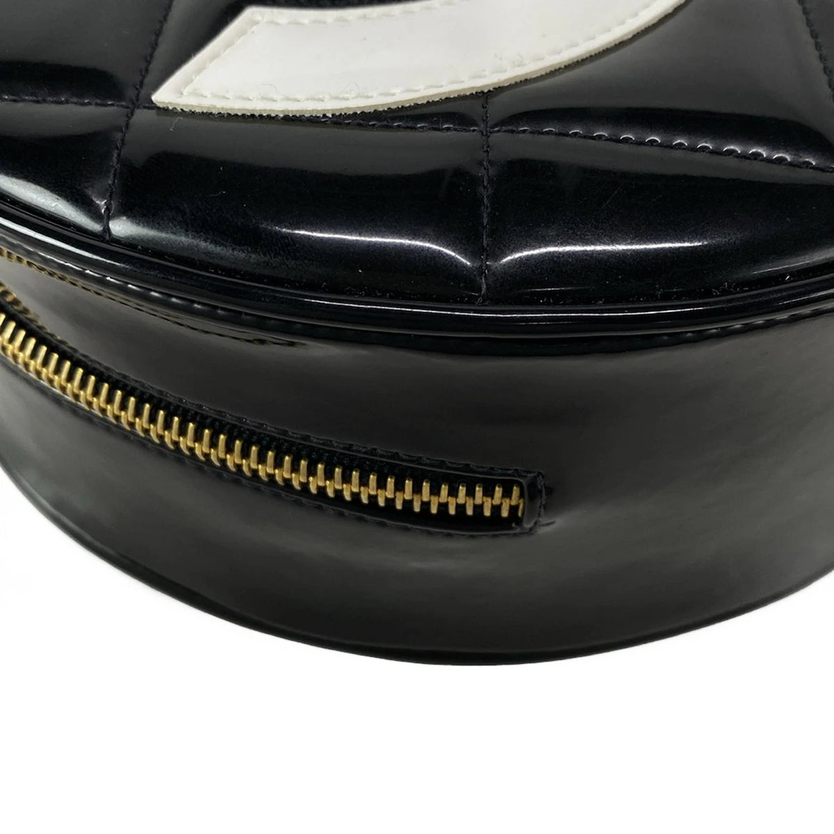 A classic Chanel vanity bag combining the practicality of a vanity case with the elegance of a handbag. Crafted in France in black-and-white patent calf leather, it features the stitched interlocking CC logo, signature diamond quilting, and a leather-and-chain top handle. Finished with an all-around zip closure.